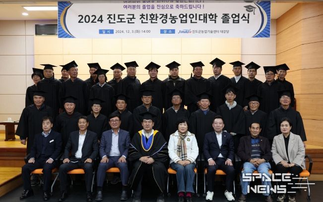 스페이스뉴스 스페이스뉴스 기자 | 진도군농업기술센터는 지난 2일, 친환경농업인대학장인 김희수 진도군수, 진도군의회 박금례 의장, 전라남도의회 김인정 의원, 진도군의회 주만종 의원, 김옥정 의원, 졸업생 등 약 50명이 참석한 가운데 제17기 친환경농업인대학 졸업식을 개최했다.