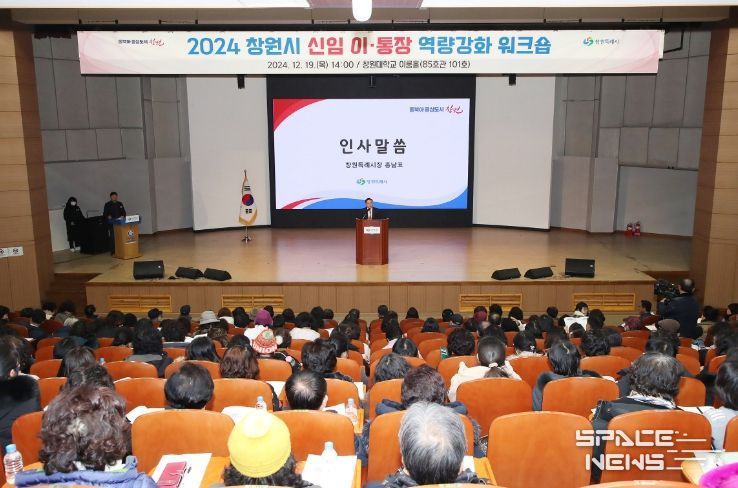 스페이스뉴스 스페이스뉴스 기자 | 창원특례시는 19일 창원대학교 이룸홀에서 2024년에 새롭게 임명된 이·통장 400여 명을 대상으로 ‘신임 이·통장 역량강화 워크숍’을 개최했다.