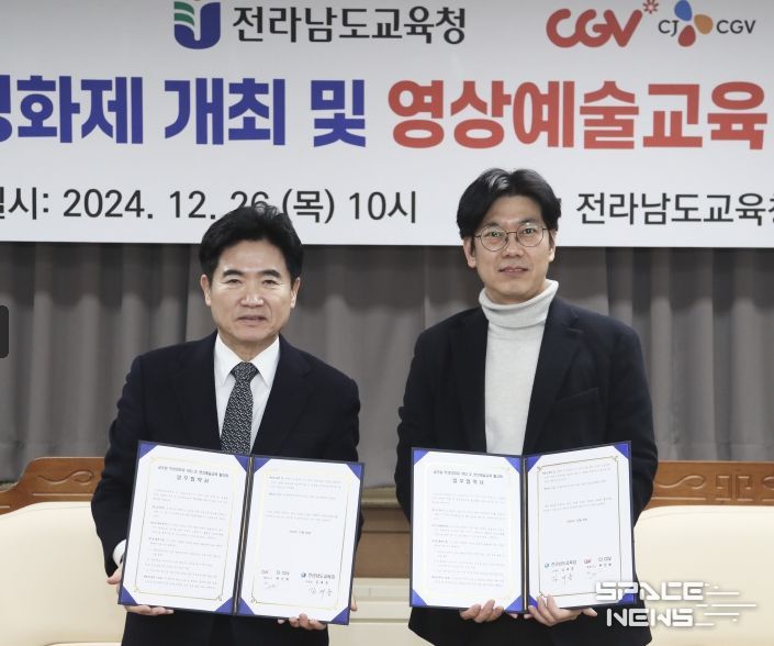 스페이스뉴스 스페이스뉴스 기자 | 전라남도교육청과 CJ CGV는 26일 전남교육청 비지니스실에서 글로컬 학생영화제 개최 및 영상예술교육 활성화를 위한 업무협약을 체결했다.