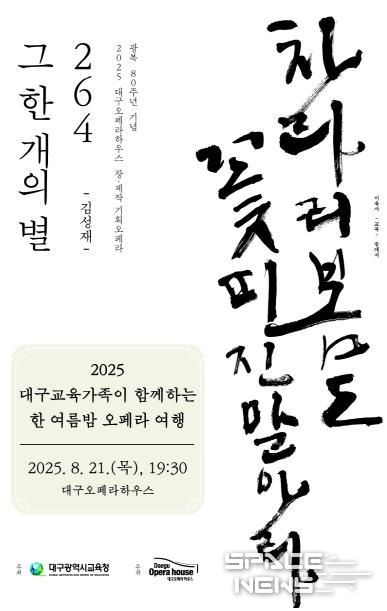 스페이스뉴스 스페이스뉴스 기자 | 대구시교육청이 광복 80주년을 맞아 8월 21일 오후 7시 30분, 대구오페라하우스에서 대구교육가족을 위한 특별공연‘오페라 '264, 그 한 개의 별'’을 마련했다.