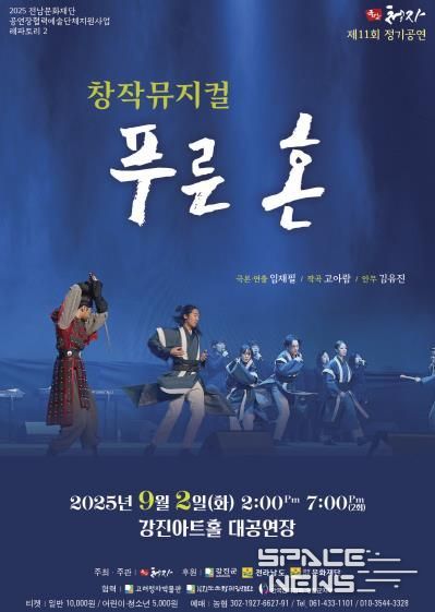 스페이스뉴스 스페이스뉴스 기자 | 창작뮤지컬 ‘푸른 혼’은 2025년 전남문화재단 공연장 협력예술단체 지원사업에 선정된 레퍼토리 작품으로, 극단 ‘청자’의 임재필 대표가 작품과 연출을 맡았다.