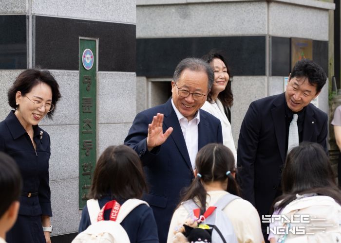 스페이스뉴스 스페이스뉴스 기자 | 김석준 부산광역시교육감은 부산지역 대다수 초등학교가 2학기 개학에 들어간 1일 동래구 명륜초등학교를 찾아 등굣길 학생들을 반갑게 맞이하고, 학사운영 준비 및 학생 안전관리 실태 등을 점검했다.