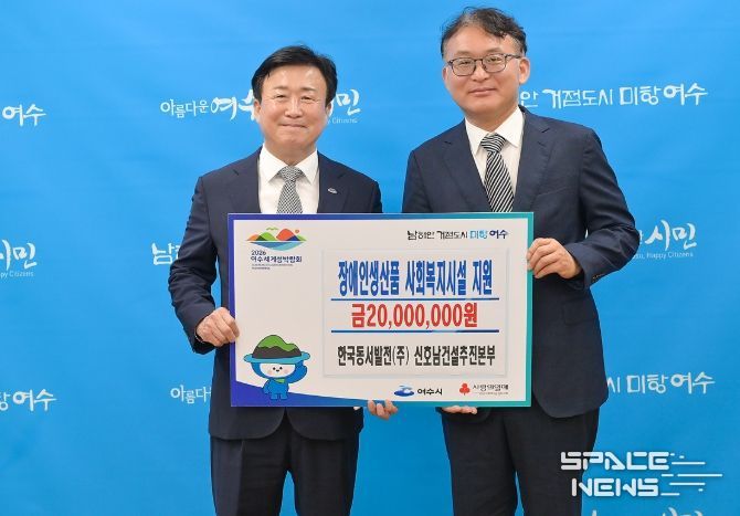 스페이스뉴스 스페이스뉴스 기자 | 여수시는 한국동서발전(주) 신호남건설추진본부(본부장 김태규)가 지난 1일 장애인생산품 2,000만 원 상당을 후원했다고 밝혔다.