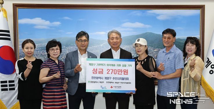 스페이스뉴스 스페이스뉴스 기자 | 인천광역시 계양구는 4일 계양구 주민자치협의회(회장 민종상)가 기후위기로 어려움을 겪는 지역 내 취약계층을 돕기 위해 270만 원을 기탁했다고 밝혔다.