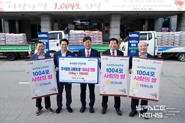 스페이스뉴스 스페이스뉴스 기자 | 안산시는 지난 22일 NH농협 안산시지부 지역농협조합 군자농협, 반월농협, 안산농협으로부터 사랑의 쌀 1천4포(포대당 10㎏)를 기탁받았다고 23일 밝혔다.