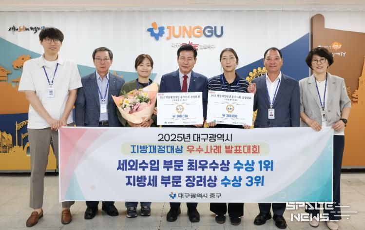 스페이스뉴스 스페이스뉴스 기자 | 대구 중구는 대구광역시와 한국지방세연구원이 주관한 ‘2025년 지방재정대상 우수사례 선정대회’에서 세외수입 부문 최우수상(1위), 지방세 부문 장려상(3위)을 받았다고 밝혔다.