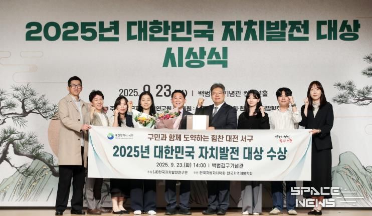 스페이스뉴스 스페이스뉴스 기자 | 대전 서구는 주민의 삶을 혁신하는 ‘생활백서 5색 정책 모델’의 성과를 인정받아, '2025년 대한민국 자치발전대상' 기초자치단체 부문 수상의 영예를 안았다고 24일 전했다.