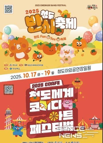 스페이스뉴스 스페이스뉴스 기자 | 청도군 은 모두가 함께 웃고 즐기는 축제, 2025 청도반시축제 및 청도세계코미디아트페스티벌이 오는 10월 17일부터 19일까지 3일간 청도야외공연장 일원에서 개최한다고 밝혔다.