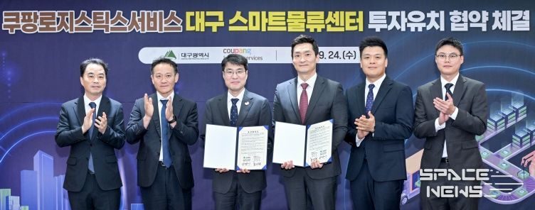 스페이스뉴스 스페이스뉴스 기자 | 대구광역시는 9월 24일 오후 4시 30분, 시청 동인청사 2층 상황실에서 국내 택배부문 1위 기업인 ‘쿠팡로지스틱스서비스(유)’(대표 홍용준, 이하 ‘쿠팡로지스틱스서비스’)와 수성알파시티 내 첨단 스마트물류센터 구축을 위한 투자유치 협약을 체결했다.