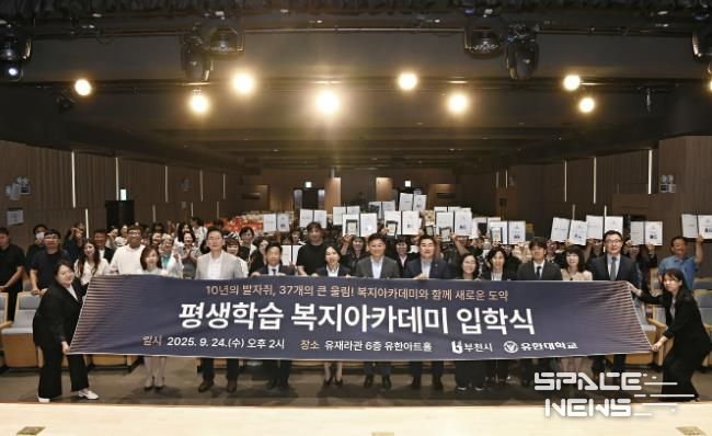 스페이스뉴스 스페이스뉴스 기자 | 부천시는 지난 24일 유한대학교에서 ‘부천시·유한대학교 복지아카데미’ 입학식과 업무협약식을 열었다. 이번 행사는 조용익 부천시장과 장은영 유한대학교 총장을 비롯해 37개 동 지역사회보장협의체 위원장 등 150여 명이 참석한 가운데 진행됐다.