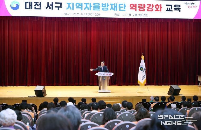 스페이스뉴스 스페이스뉴스 기자 | 대전 서구은 이달 25일 구청 구봉산홀에서 지역자율방재단 역량 강화 교육을 진행했다.