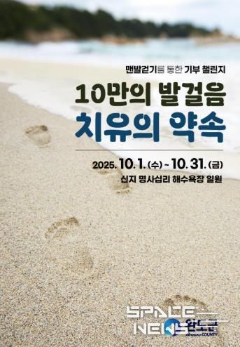 스페이스뉴스 스페이스뉴스 기자 | 완도군은 해양치유센터 이용객 10만 명과 해양기후·문화, 맨발 걷기 등 누적 치유객 50만 명 달성을 기념해 10월 1일부터 31일까지 한 달간 신지 명사십리 해수욕장 일원에서 ‘해양치유 맨발 걷기 나눔 챌린지’를 진행한다.