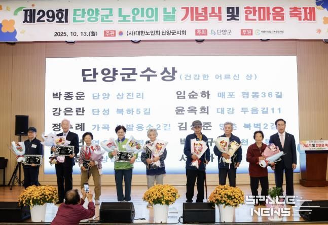 스페이스뉴스 스페이스뉴스 기자 | 단양군은 지난 13일 소노벨 단양에서 열린 제29회 ‘노인의 날’ 기념식에서 2025년 제3회 ‘건강한 어르신’ 선정패를 수여했다고 밝혔다.