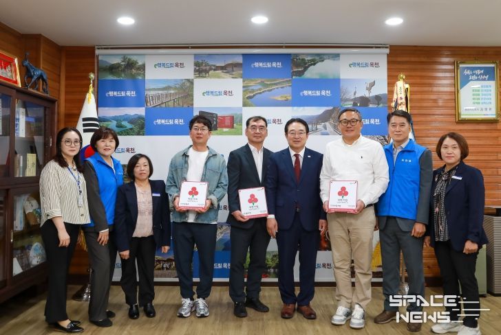 스페이스뉴스 스페이스뉴스 기자 | 옥천군이 고려산업개발(대표 고정일), 지선생쌈촌(대표 지홍욱), ㈜폴리택(대표 한태동)에 충북사회복지공동모금회‘착한기업·착한가게’인증패를 전달했다고 17일 밝혔다.