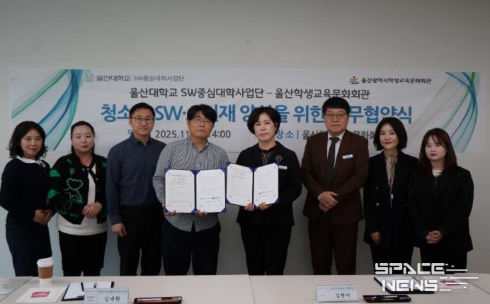 스페이스뉴스 스페이스뉴스 기자 | 울산학생교육문화회관이 5일 울산대학교 소프트웨어중심대학사업단과 미래 소프트웨어(SW) 인재 양성을 주요 내용으로 하는 업무협약을 체결했다.