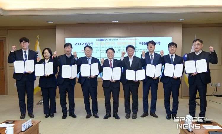 광주광역시는 22일 시청 비즈니스룸에서 광주신용보증재단, 광주은행, 하나은행, KB국민은행, NH농협은행, 신한은행, 카카오뱅크, 우리은행 등 8개 금융기관과 ‘2026년 소상공인 특례보증 지원 협약’을 체결했다.