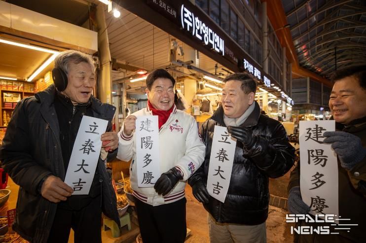 특히 이번 일정은 4일 ‘입춘’을 앞두고 진행돼 분위기가 남달랐다. 입춘은 24절기 가운데 첫 절기로 ‘봄의 시작’을 알리는 날로, 예로부터 대문에 ‘입춘첩’을 붙이며 한 해의 복을 기원해 왔다. 이 구청장과 상인들은 ‘입춘대길 건양다경(立春大吉 建陽多慶)’이라 적힌 종이를 함께 들어 보이며 환하게 웃는 사진을 남기기도 했다. 이 문구는 입춘에 많이 쓰이는 글귀로 “봄이 드니 크게 길하고, 좋은 경사가 많기를 바란다”는 뜻을 담는다. 구는 “설을 앞둔 시장의 분주함과 입춘이 상징하는 새출발의 기운이 맞물려, 주민과 상인 모두에게 작은 희망이 되길 바라는 마음”이라고 전했다.