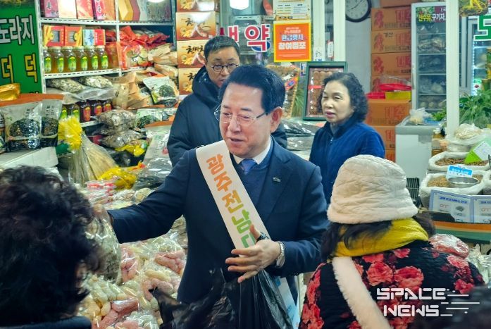 스페이스뉴스 스페이스뉴스 기자 | 김영록 전라남도지사는 설 명절을 앞둔 14일 광주와 전남 전통시장과 광주송정역을 찾아 전남·광주 행정통합의 비전을 공유하고, 통합 성과를 산업·경제 경쟁력 강화와 전통시장 활성화로 연결하겠다는 방향을 제시했다.