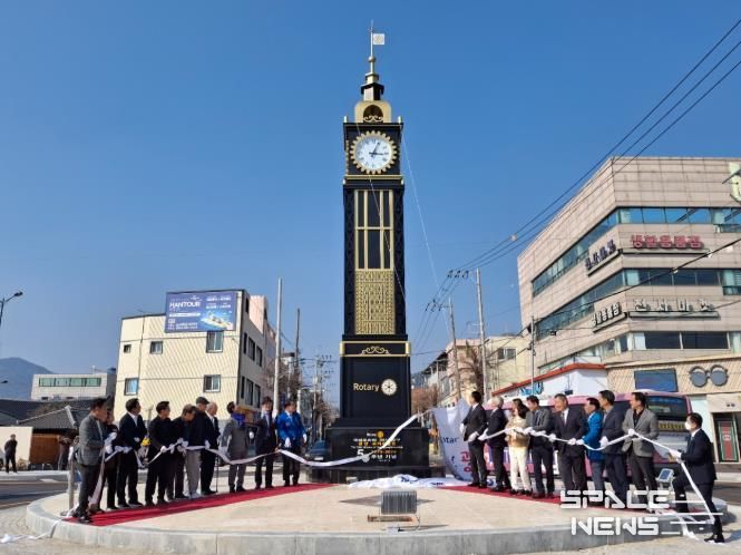 스페이스뉴스 스페이스뉴스 기자 | 광양로타리클럽은 지난 3월 10일 광양읍 목성중앙로사거리 회전교차로(구 시계탑사거리)에서 창립 50주년을 기념하는 시계탑 제막식을 개최했다.