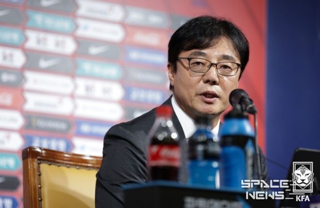 대한축구협회는 14일 종로구 축구회관에서 아시안게임 대표팀 최종명단 발표 기자회견을 열었다. 이 자리에는 사령탑을 맡은 황선홍 감독이 참석했다. 황 감독은 해외파 4명과 연령 제한 없이 뽑을 수 있는 와일드카드 3명을 비롯해 22명의 명단을 발표했다.