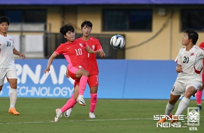 스페이스뉴스 스페이스뉴스 기자 | 여자 축구 국가대표팀이 아시안게임에서 1-4로 대패했던 북한을 상대로 좋은 경기력을 선보이며 값진 승점을 따냈다.