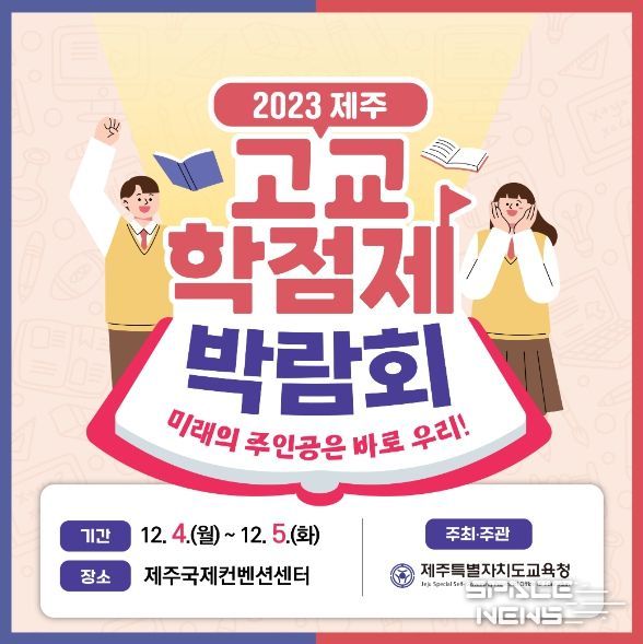 스페이스뉴스 스페이스뉴스 기자 | 제주특별자치도교육청은 도내 학생 및 학부모, 교사들을 대상으로 12월 4일부터 5일까지 2일간 ICC 제주국제컨벤션센터 이벤트홀에서‘미래의 주인공은 바로 우리’를 주제로『2023 제주 고교학점제 박람회』를 개최한다.