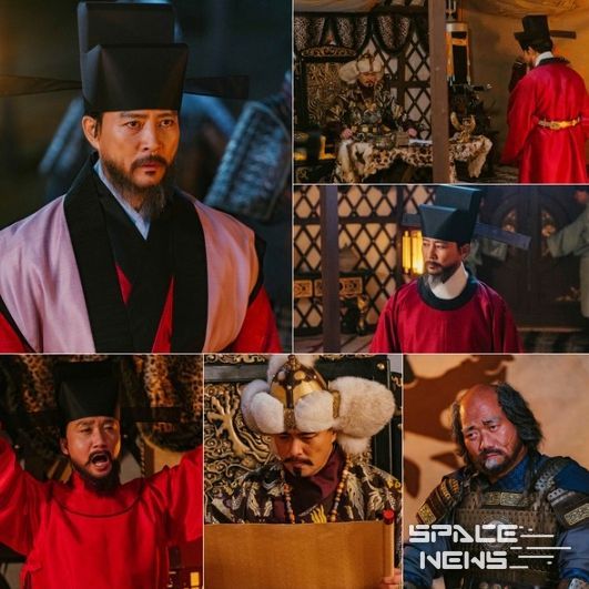 그런 가운데 오늘(8일) 공개된 스틸 속 비장한 심정으로 거란군 군영에 도착한 강감찬의 모습이 담겨 있다. 개경에서 보낸 표문을 살펴보던 야율융서는 친조를 허락하면 현종이 신하로서 발아래 엎드릴 것이라는 강감찬의 말에 흡족한 표정을 지어 보인다.