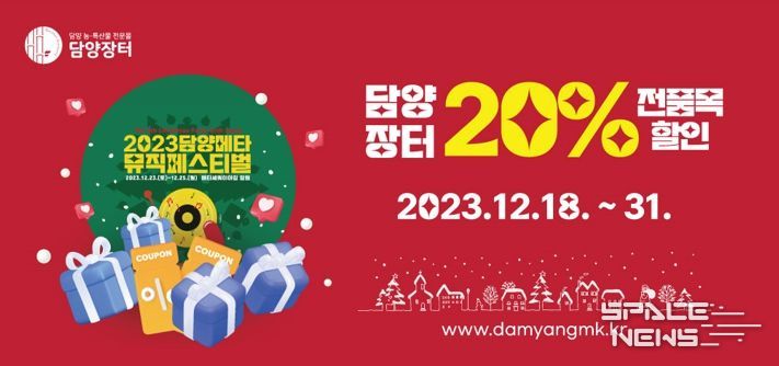 스페이스뉴스 스페이스뉴스 기자 | 담양군은 연말을 맞이해 오는 12월 31일까지 지역 농특산물 전문 판매장 ‘담양장터’에서 전 품목 20% 특별 할인행사를 진행한다고 밝혔다.