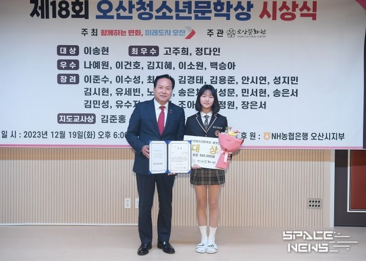 스페이스뉴스 스페이스뉴스 기자 | 오산고등학교 2학년 이송현 학생의 시 ‘첫 눈’이 제18회 오산청소년 문학상에서 대상을 차지했다.