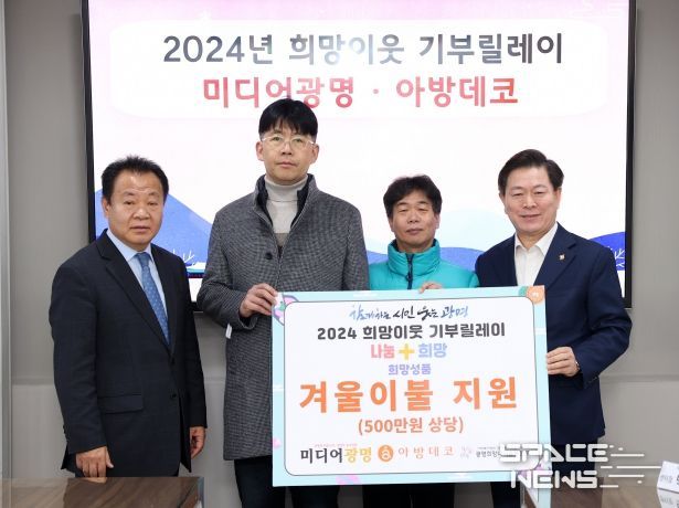 스페이스뉴스 스페이스뉴스 기자 | 광명시사회복지협의회 광명희망나기운동사업의 2024 희망이웃 기부릴레이에 미디어광명과 아방데코가 동참해 지난 3일 각 250만 원씩 총 500만 원 상당의 겨울이불 95채를 전달하며 겨울철 취약계층의 따뜻한 겨울나기를 지원했다.