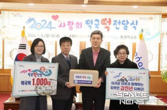 스페이스뉴스 스페이스뉴스 기자 | 포항시 평생교육지도자협의회는 8일 포항시청을 방문해 1천만 원 상당의 떡국 떡 1톤을 전달하며 따뜻한 정을 나눴다.