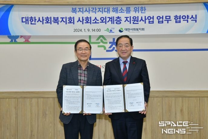 스페이스뉴스 스페이스뉴스 기자 | 속초시와 대한사회복지회는 1월 9일 시청 상황실에서 복지 사각지대 발굴 및 지원을 위한 업무 협약을 체결했다.