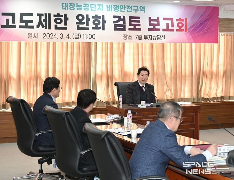 이날 보고회는 태장농공단지 일원 고도제한으로 재산권 행사에 어려움을 겪어온 입주기업체들의 장기 민원을 해소하기 위한 전문기관의 연구용역을 검토하는 자리였다.
