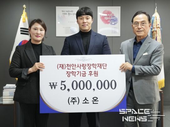 스페이스뉴스 스페이스뉴스 기자 | (주)소온은 6일 천안시청을 방문해 지역인재 육성 및 어려운 학생들을 위해 장학기금 500만원을 (재)천안사랑장학재단에 기탁했다.