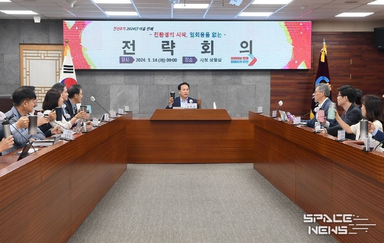 스페이스뉴스 스페이스뉴스 기자 | 오산시는 이달부터 친환경 가치 확산과 공직사회 디지털화에 앞장서기 위해 14일 오산시청 상황실에서 ‘종이 없는 회의’를 개최했다.