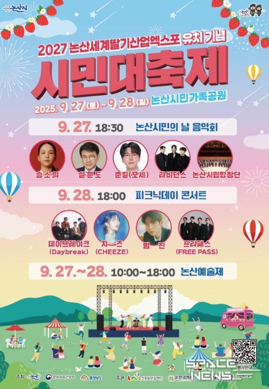 스페이스뉴스 스페이스뉴스 기자 | 논산시는 오는 27일부터 28일까지 논산시민가족공원에서 ‘2027 세계딸기산업엑스포 유치기념 시민대축제’를 개최한다.