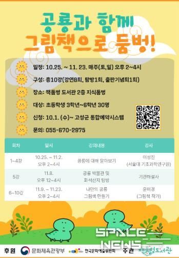 프로그램 참여 신청은 10월 1일부터 고성군 통합예약시스템을 통해 할 수 있으며, 자세한 사항은 책둠벙 도서관으로 문의하면 된다.