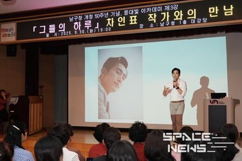 스페이스뉴스 스페이스뉴스 기자 | 부산 남구는 지난 9월 30일 남구청 개청 50주년을 맞이해, 구청 1층 대강당에서 '제20기 등대빛 아카데미' 3강으로 배우 겸 작가 차인표 씨를 초청해 특별강연을 열었다.
