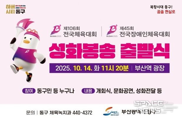 스페이스뉴스 스페이스뉴스 기자 | 부산동구는 오는 10월 14일, 제106회 전국체육대회 및 제45회 전국장애인체육대회의 성공적인 개최를 기원하고 대회의 시작을 알리는 성화봉송 출발식행사를 개최한다고 밝혔다.