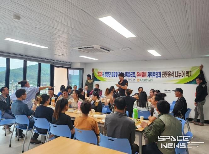 스페이스뉴스 스페이스뉴스 기자 | 남영양농협은 지난 10월 3일 영양군 농업근로자 기숙사에서 라오스 출신 공공형 계절근로자 30명과 지역주민이 함께하는‘추석맞이 전통음식 나누기' 행사를 가졌다.