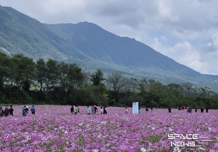 가조온천꽃단지는 연휴 기간 분홍빛․황금빛 코스모스가 만개하며 사진 명소로 큰 인기를 끌었다. 포토존과 커피쿠폰 이벤트, 치유프로그램 체험 부스 운영 등으로 방문객들의 만족도를 높였다.