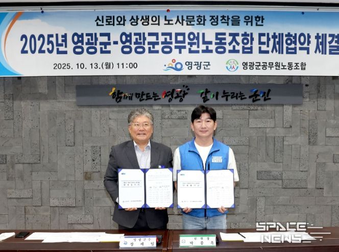 스페이스뉴스 스페이스뉴스 기자 | 영광군은 지난 10월 13일 군청 2층 소회의실에서 영광군공무원노동조합과 “2025년 단체협약식”을 체결했다.