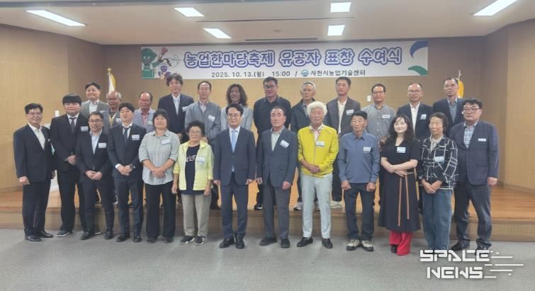 스페이스뉴스 스페이스뉴스 기자 | 사천시는 지난 13일 농업기술센터 3층 대회의실에서 제17회 사천시농업한마당축제를 기념해 그동안 농업발전과 농업경쟁력 향상에 기여한 유공자들에게 표창을 수여했다고 14일 밝혔다.