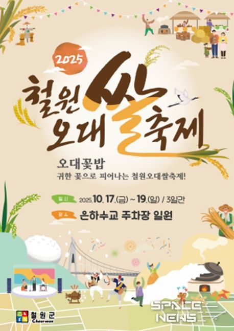 스페이스뉴스 스페이스뉴스 기자 | 철원군은 10월 17일부터 19일까지 3일간 철원군 동송읍 장흥리 2721번지 은하수교 주차장 일원에서 『2025 철원오대쌀 축제』를 개최한다.
