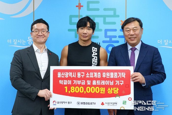 스페이스뉴스 스페이스뉴스 기자 | 운동 유튜브 채널 ‘바벨라토르’(대표 이정희)가 10월 14일 오후 3시 동구청을 방문해, 지난 9월 13일 일산해수욕장 중앙광장에서 ‘턱걸이 왕중왕전’을 진행하고 모금한 기부금과 운동 물품 등 180만 원 상당을 동구에 기부했다.