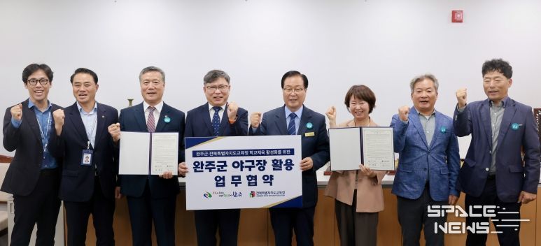 스페이스뉴스 스페이스뉴스 기자 | 전북특별자치도교육청과 완주군은 14일 완주군청에서 학생 및 학생선수의 교육활동과 체육진흥을 위한 업무협약을 체결했다.