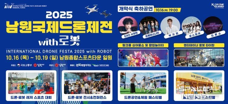 스페이스뉴스 스페이스뉴스 기자 | 미래 산업과 문화, 체험이 어우러진 국내 최대 드론·로봇 융복합 축제 ‘2025 남원국제드론제전 with 로봇’이 오는 10월 16일부터 19일까지 4일간 남원종합스포츠타운 일원에서 열린다.