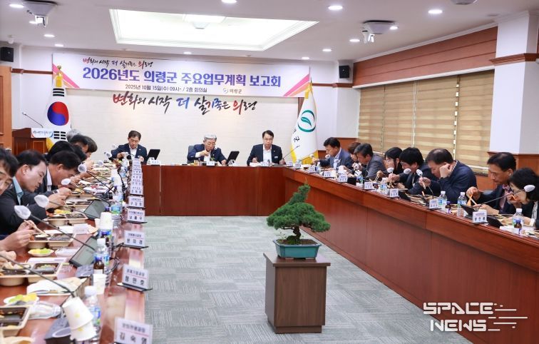 스페이스뉴스 스페이스뉴스 기자 | 의령군은 15일 군청 회의실에서 신규·핵심사업과 내년도 주요 사업의 실행 계획을 논의하기 위한 ‘2026년도 주요업무계획 보고회’를 개최했다고 밝혔다.