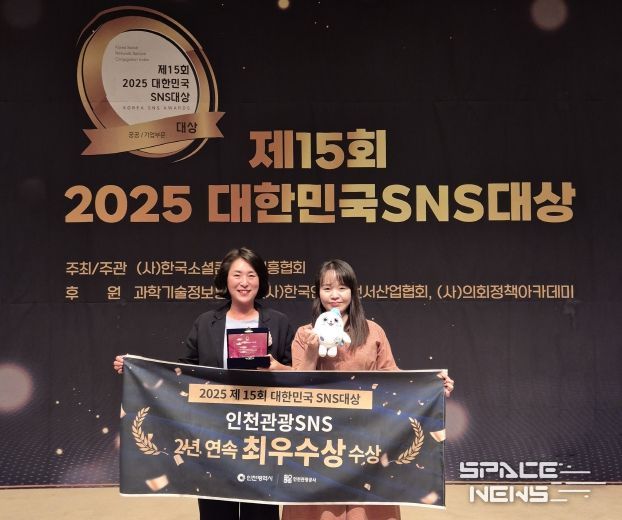 스페이스뉴스 스페이스뉴스 기자 | 인천광역시와 인천관광공사(사장 백현)는 인천관광 SNS가‘2025 대한민국 SNS 대상’ 공공부문에서 최우수상을 수상하며, 2년 연속 수상의 영예를 안았다고 밝혔다.