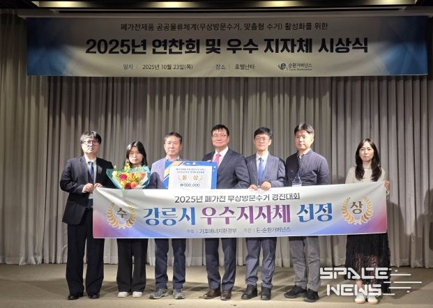 스페이스뉴스 스페이스뉴스 기자 | 강릉시는 지난 6월 세계 환경의 날을 맞이하여 자원순환 및 재활용 활성화에 기여한 공로로 ‘환경보전 유공 국무총리 단체표창’을 수상하는데 이어, 23일 기후에너지환경부가 주최하는 '2025년 폐가전 무상수거처리 전국 지자체 경진대회'에서 ‘동상’을 수상하여 기후에너지환경부장관 단체표창을 받는 쾌거를 이뤘다.